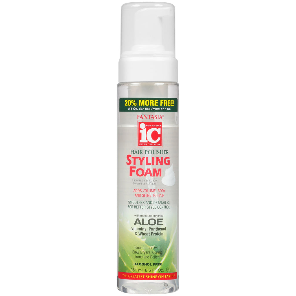 As an industry expert, Fantasia IC Hair Polisher Styling Foam delivers a sophisticated formula that transforms liquid into a rich, whipped foam. Providing the control of a gel and the body and hold of a mousse, this styling foam also adds volume, smooths and detangles hair, and even strengthens and protects against heat and chemical damage. With a quick drying formula that contains a protective sunscreen, this foam is perfect for achieving greater manageability and style control while moisturizing, adding elasticity, and brilliant shine to dry, damaged hair. Experience the benefits daily, without any tacky buildup.