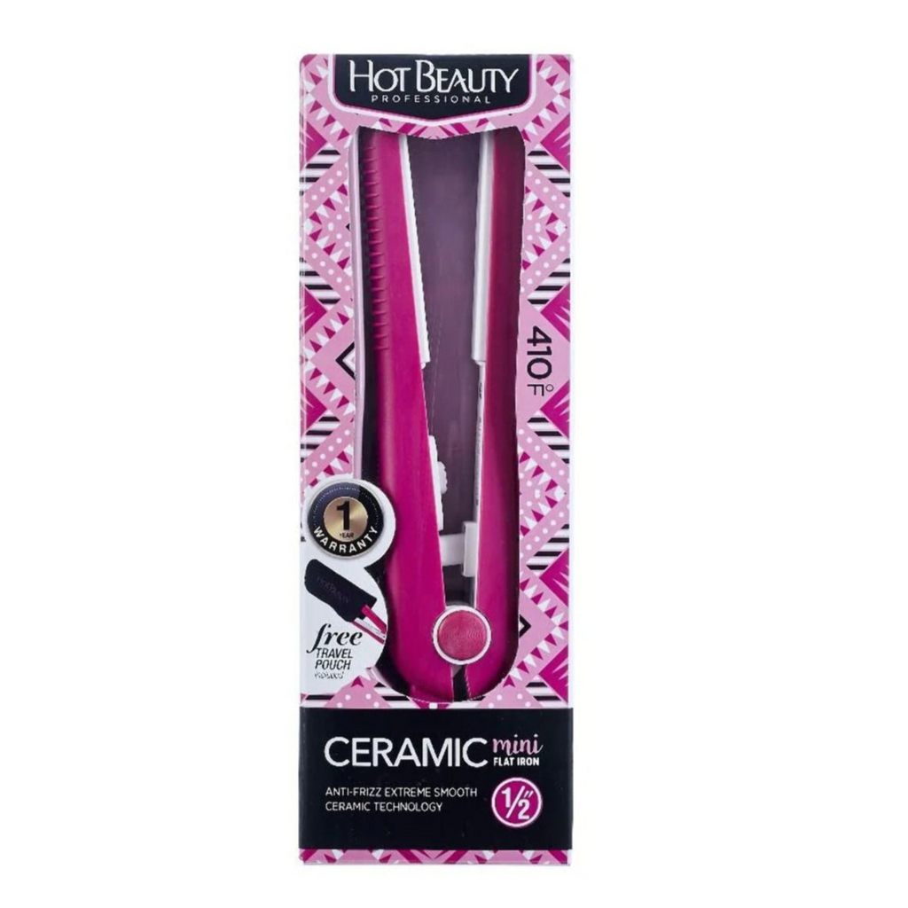 The Hot Beauty Ceramic Mini Travel Flat Iron Pink 1/2" features extra-hot ceramic plates for smooth, shiny, and silky hair. With a compact 6.5 inch size, it heats up in under 30 seconds for quick styling on-the-go. The superior heat distribution helps prevent damaging hot spots and frizz.