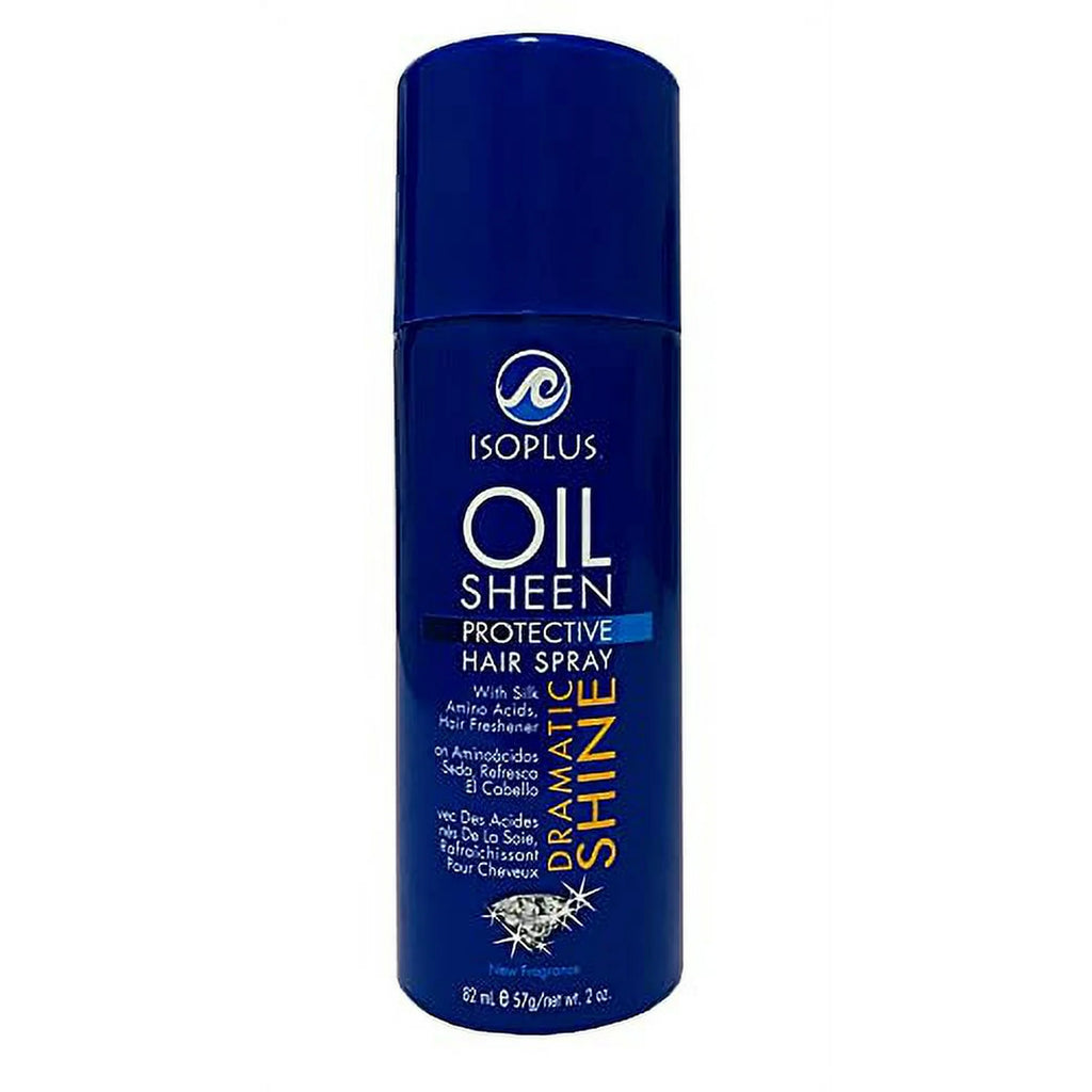 Isoplus Oil Sheen Hair Spray 2oz strengthens hair with silk amino acids, olive oil, and coconut oil. This protective spray delivers a dramatic shine to natural hair and wigs. Revitalize your hair and add a lustrous finish with just one spray. Experience the benefits of this nourishing formula.