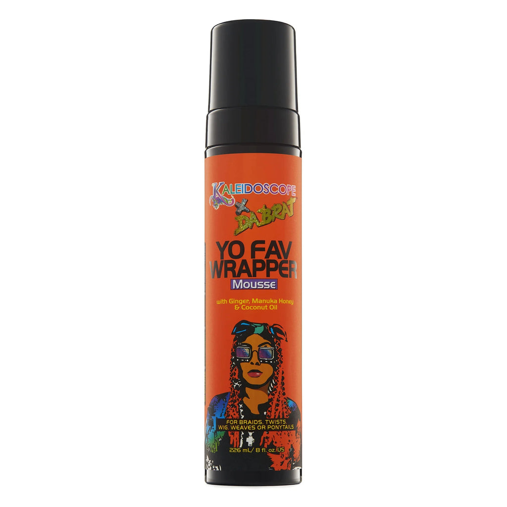 Enhance your natural or protective styles with Kaleidoscope x Da Brat Yo Fav Wrapper Mousse. Made with Coconut Oil & Manuka Honey, this finisher eliminates flaking and drying, leaving hair looking and feeling nourished. Your go-to for flawless, long-lasting styles.