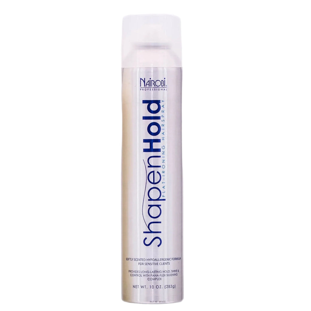 Achieve salon-worthy hair with Nairobi Shape n Hold Flat Ironing Hairspray 10oz. This softly scented, hypoallergenic formula provides long-lasting hold, shine, and control with the pana-flex silkening complex. With an ultra-clean, non-sticky, and non-flaking formula, you can style and re-style your hair without any hassle. Simply hold 10-12 inches away and spray for direction, lift, and control during blow drying or after styling for ultimate hold.