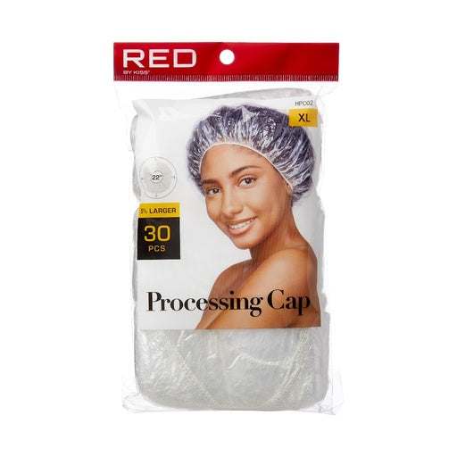 The Red by Kiss Extra Large Processing Cap provides a comfortable and durable elastic edge, making it perfect for hair treatments, deep conditioning, coloring, showering, and perming. With its 22" 5% larger design, it can be worn up to 10 times. Made from strong vinyl material, it's also disposable and water resistant, protecting your natural hair while providing maximum coverage.